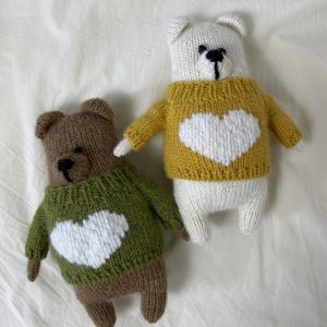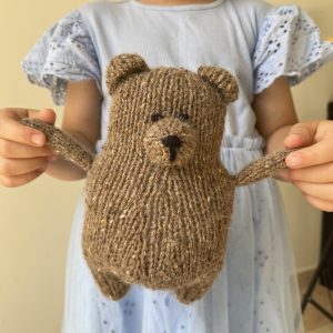 The Little Teddy Bear is knitted flat in rows from the top down, in one piece from head to legs …