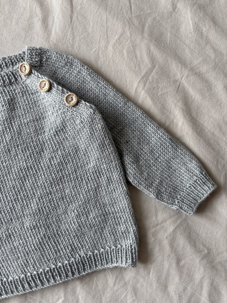 The January Sweater is worked from the top down in stockinette stitch with raglan increases.