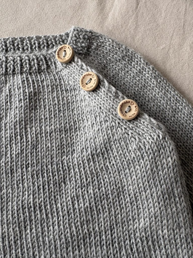 Work in the round in stockinette stitch until the sweater measures 25 cm [9¾ inches], measured from the cast-on edge at the mid back.