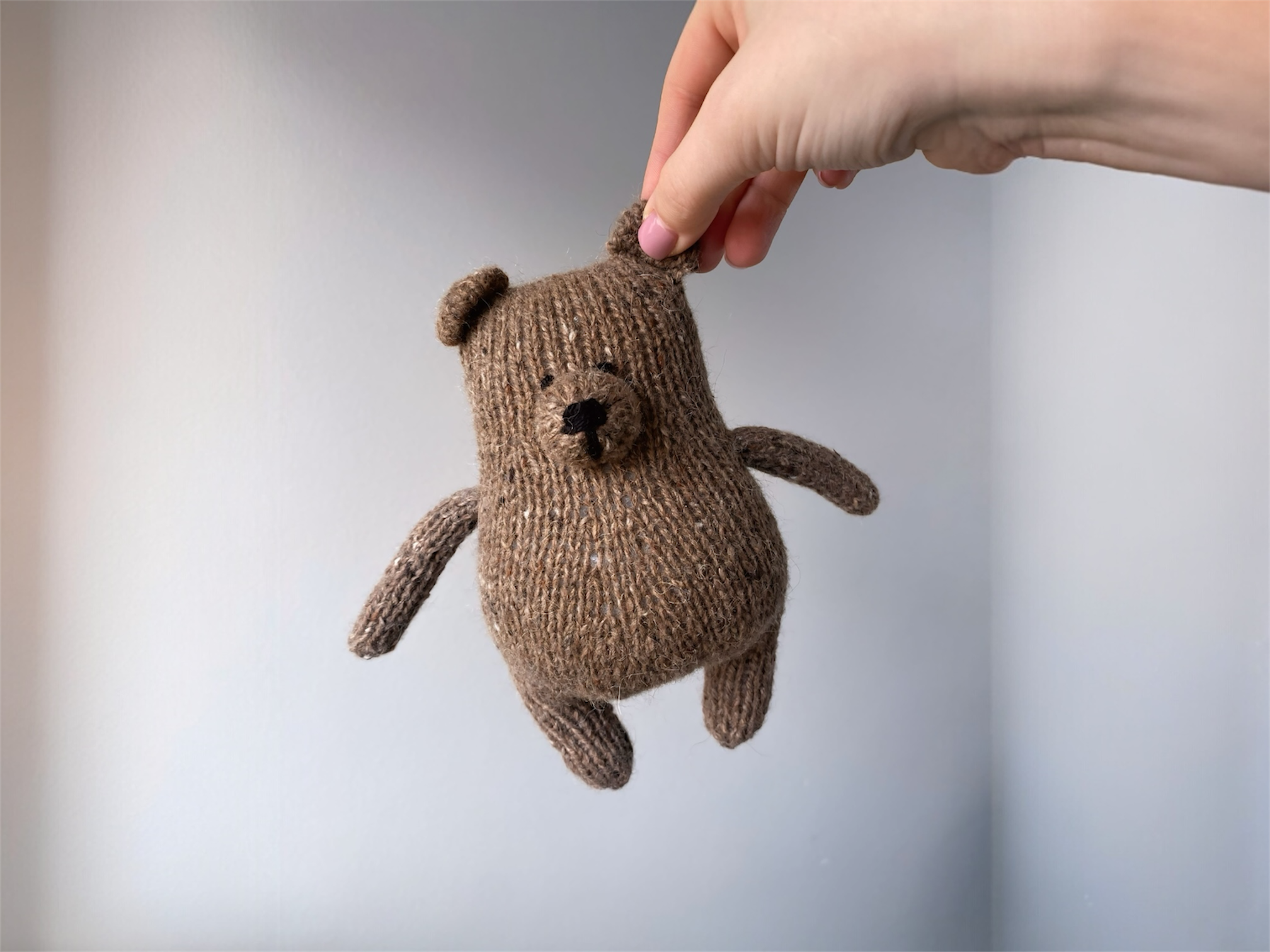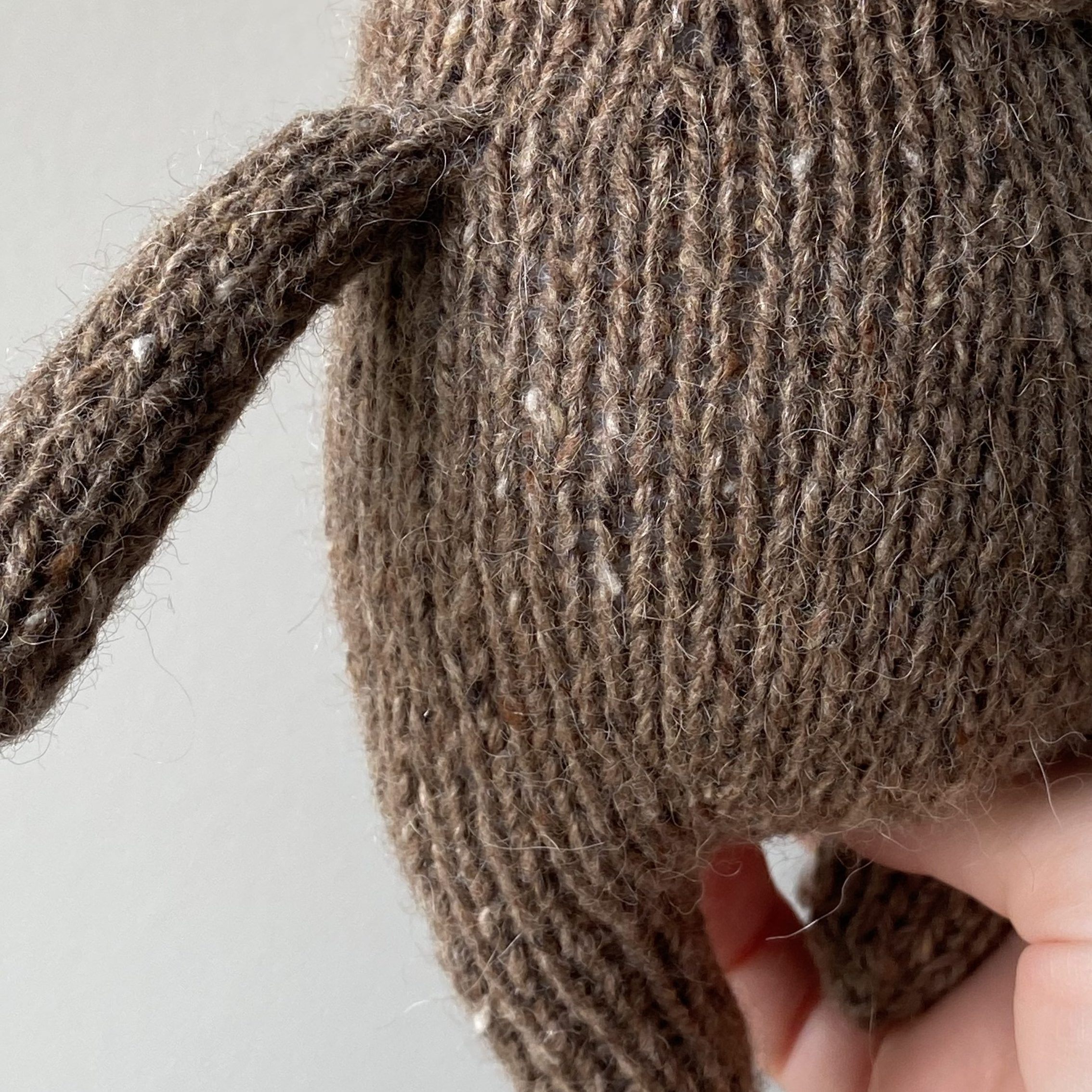 Materials:30 g yarn Drops Soft Tweed (50g/130m), black embroidery thread for eyes and nose or another yarn