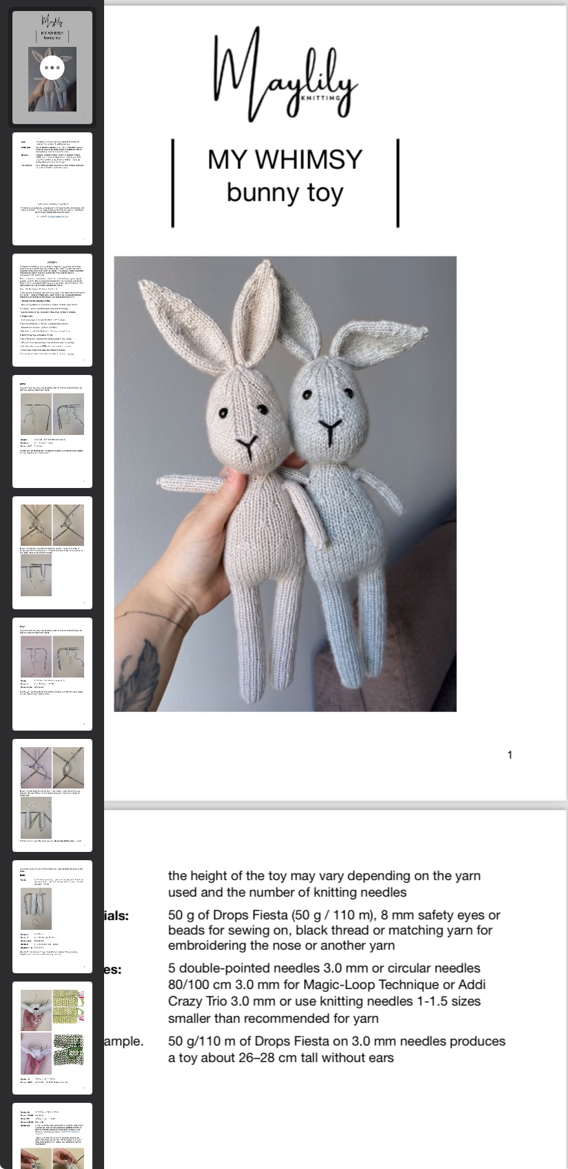 1 review for My Whimsy Bunny Toy Knitting Pattern | Instant Download PDF