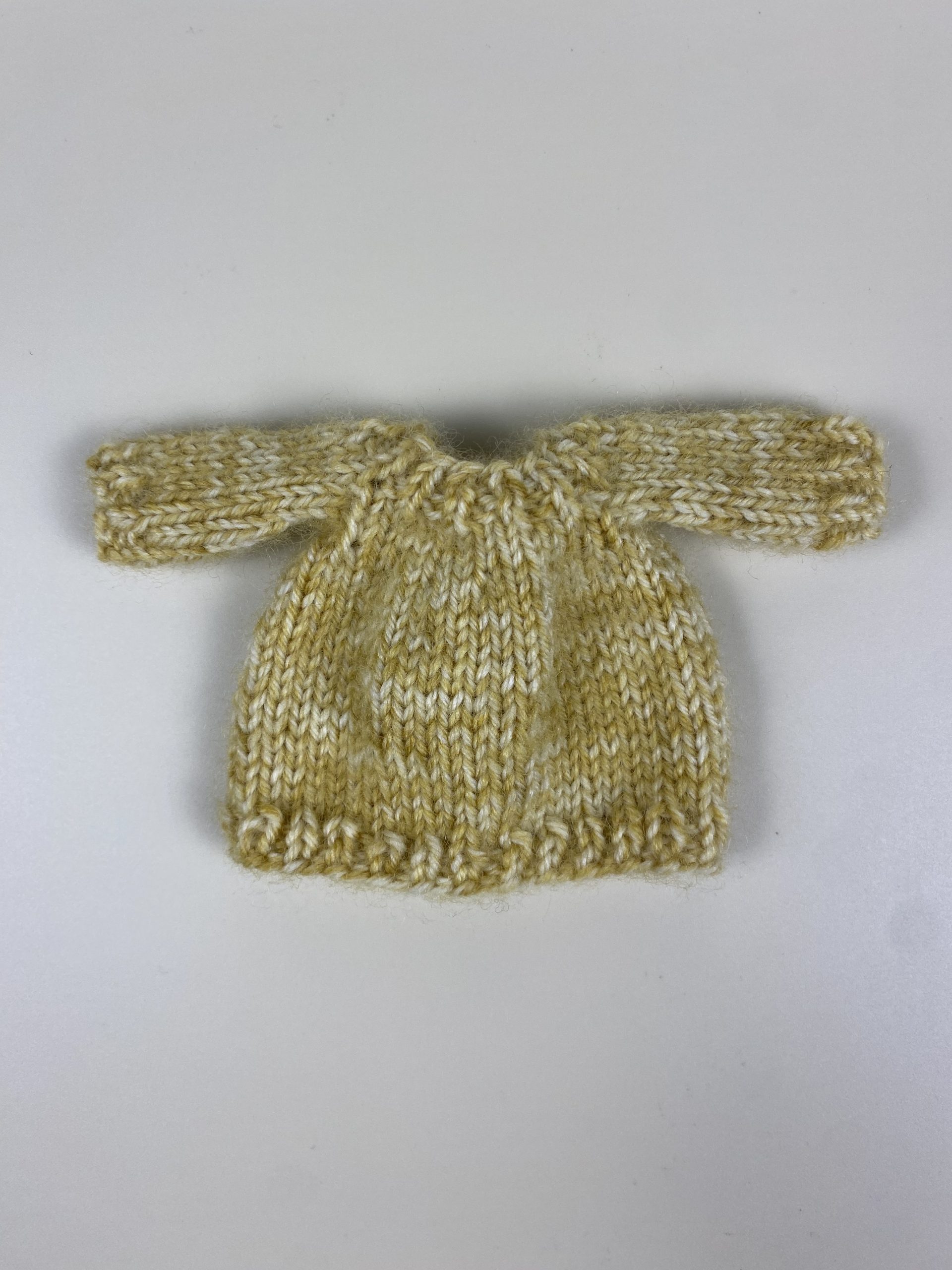 - Dress: 30 g Drops Fiesta or the same yarn used to knit the toy